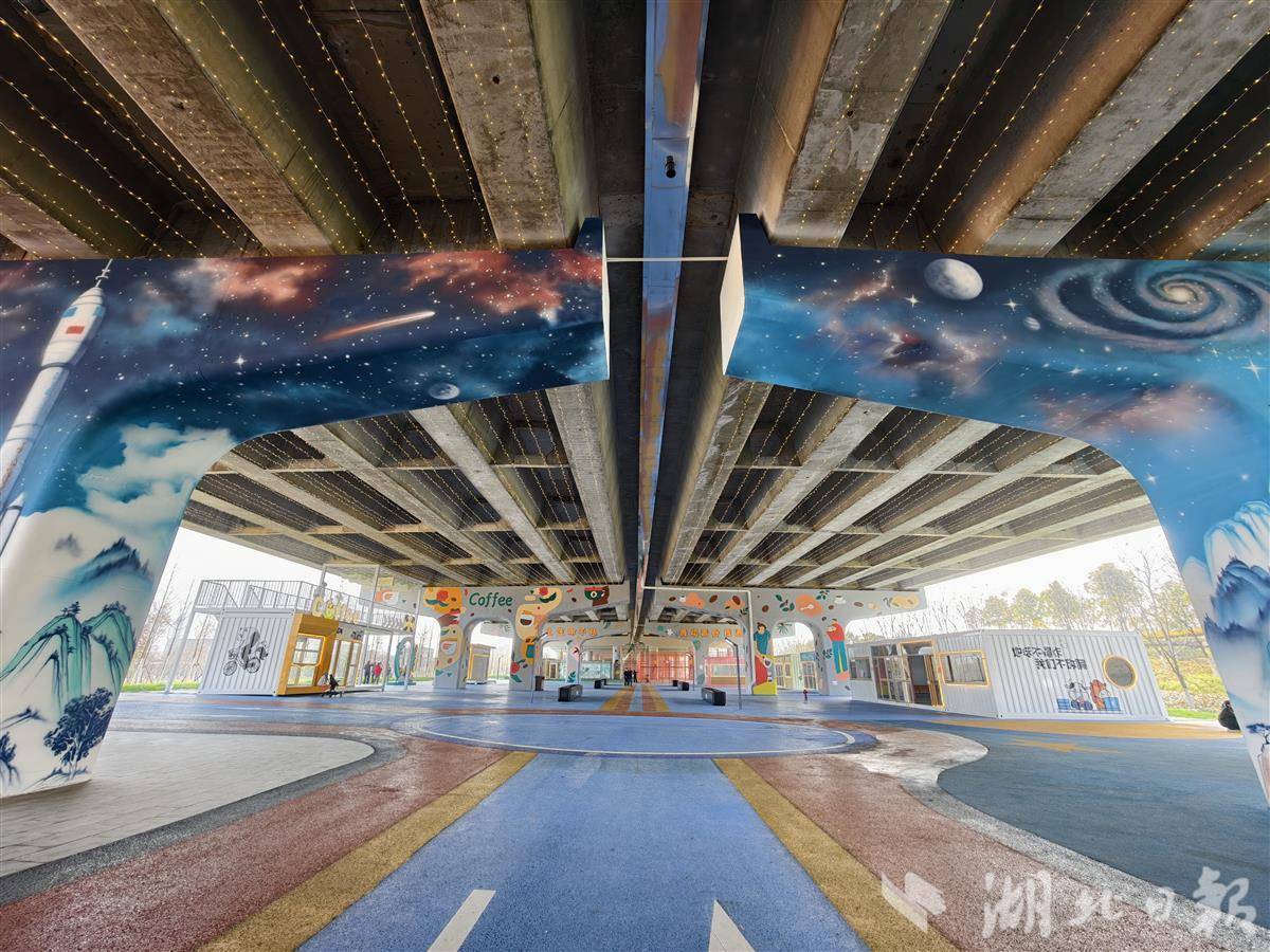 “江夏印象”桥下空间,绘上了星空和青花水墨。(湖北日报全媒记者 张竞恒 摄)